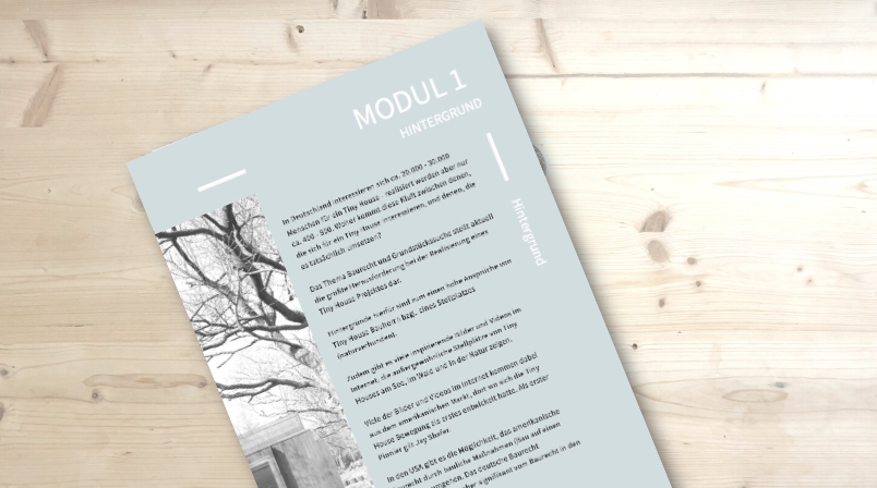 Unterlage & Präsentation: Hier findest du eine Unterlage, die du für die Vorstellung deines Tiny House Projektes bei deiner lokalen Baubehörde nutzen kannst. Neben einer Definition, den Vorteilen von minimalistischen Wohnformen, findest du auch aktuelle Tiny House Referenzprojekte in der Unterlage.